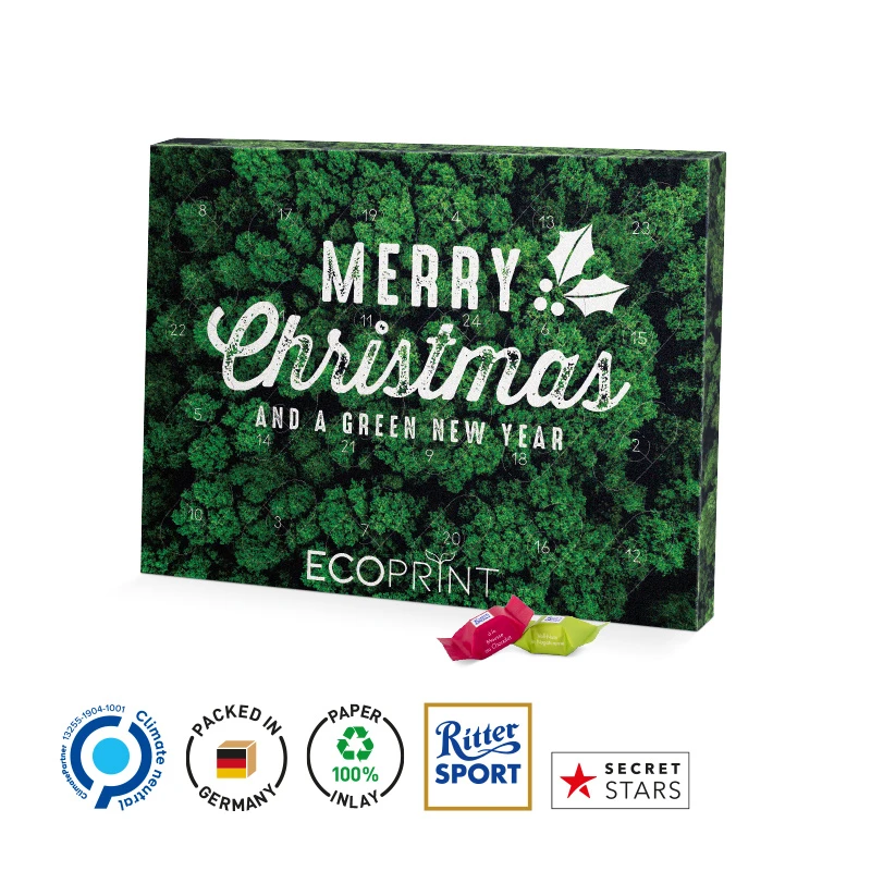 Wand Adventskalender in FSC-zertifizierter Vollkartonhülle, klimaneutral, individuell bedruckt