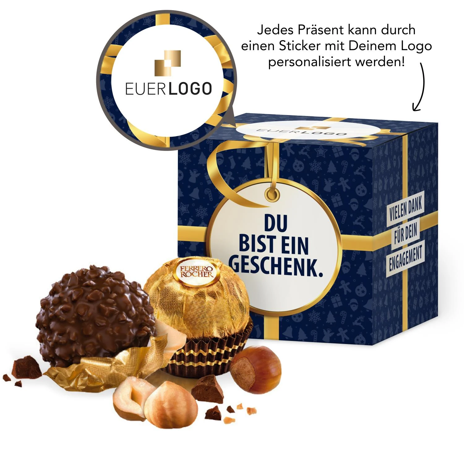 Die wertschätzende Botschaft „Du bist ein Geschenk“ und die beliebteste Praline der Welt vereinen sich in diesem wunderschönen, blauen Geschenk-Würfel zu einem unvergesslichen Moment für Deine Mitarbeiter und Kunden. Dieses Präsent ist mehr als nur ein süßer Leckerbissen; es ist ein Symbol dafür, dass Du die individuellen Beiträge jedes Einzelnen in Deinem Team wahrnimmst und würdigst.