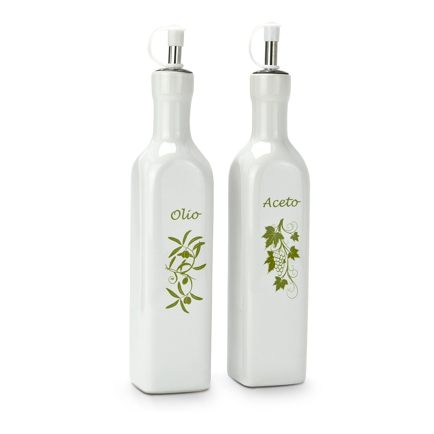 Schlichte Essig und Öl Spender (je 250 ml) mit Dosierkopf für die mediterrane Küche (Keramik, Edelstahl).