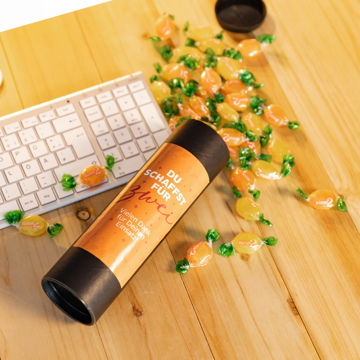 • Aufdruck: „Du schaffst für zwei – Vielen Dank für Deinen Einsatz!“