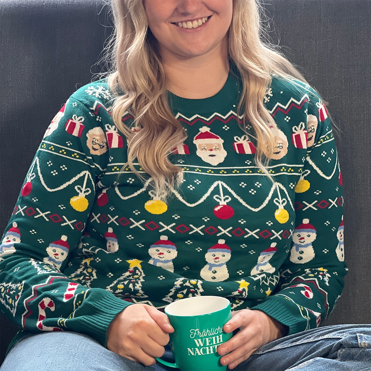 Zu Weihnachten soll es gerne noch persönlicher sein? Kein Problem, mit dem Namen Deiner Mitarbeiter oder Kunden auf der Banderole sowie Deinem Logo oder Deinen Firmenfarben wird aus dem liebevoll weihnachtlich gestalteten Pulli ein Einzelstück, das man gar nicht mehr ausziehen möchte.