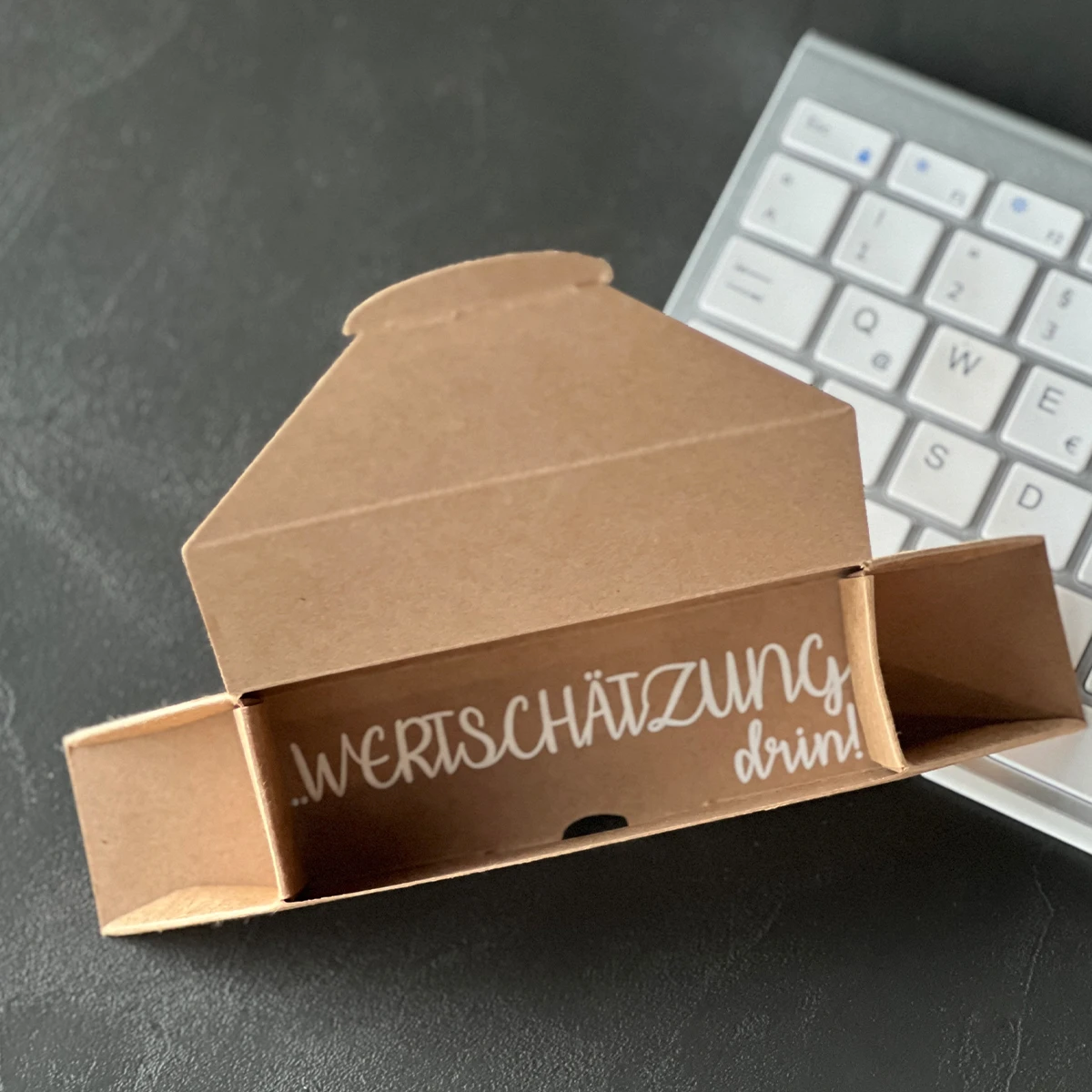 | Optional: Einzelversand-Service: | Wir versenden für Dich direkt an Kunden & Mitarbeiter |
