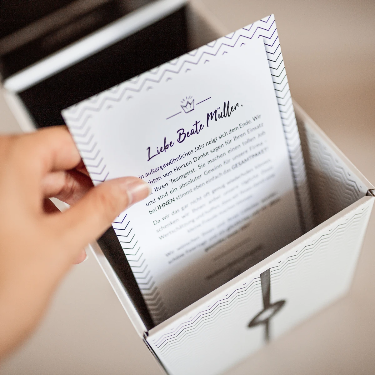 - Optional: Abgestimmte Grußkarte mit Deinem Wunschtext und persönlicher Anrede