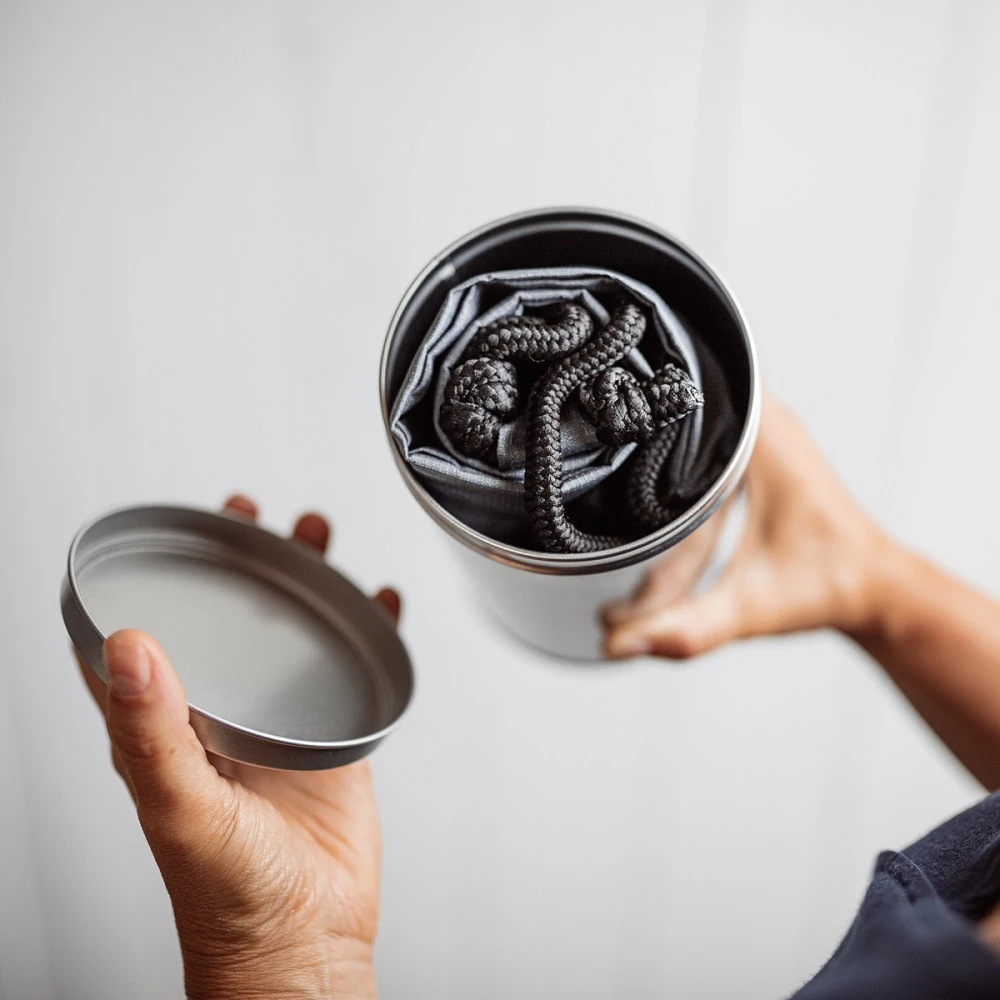 Verpackt ist der moderne Zugbeutel in einer hochwertigen „Geschenk-Säule“, die danach als Aufbewahrungsdose ganz praktisch weiterverwendet werden kann. Und wenn Du es richtig persönlich machen möchtest, drucken wir die Namen Deiner tragenden Säulen einzeln auf jedes Präsent! Damit ist auch das Fundament für das kommende Jahr mit viel Wertschätzung angerührt. Nutze auch unseren praktischen Logistik-Service: Wir lagern für Euch und schicken pünktlich zum besonderen Tag nach Hause oder ins Unternehmen.
