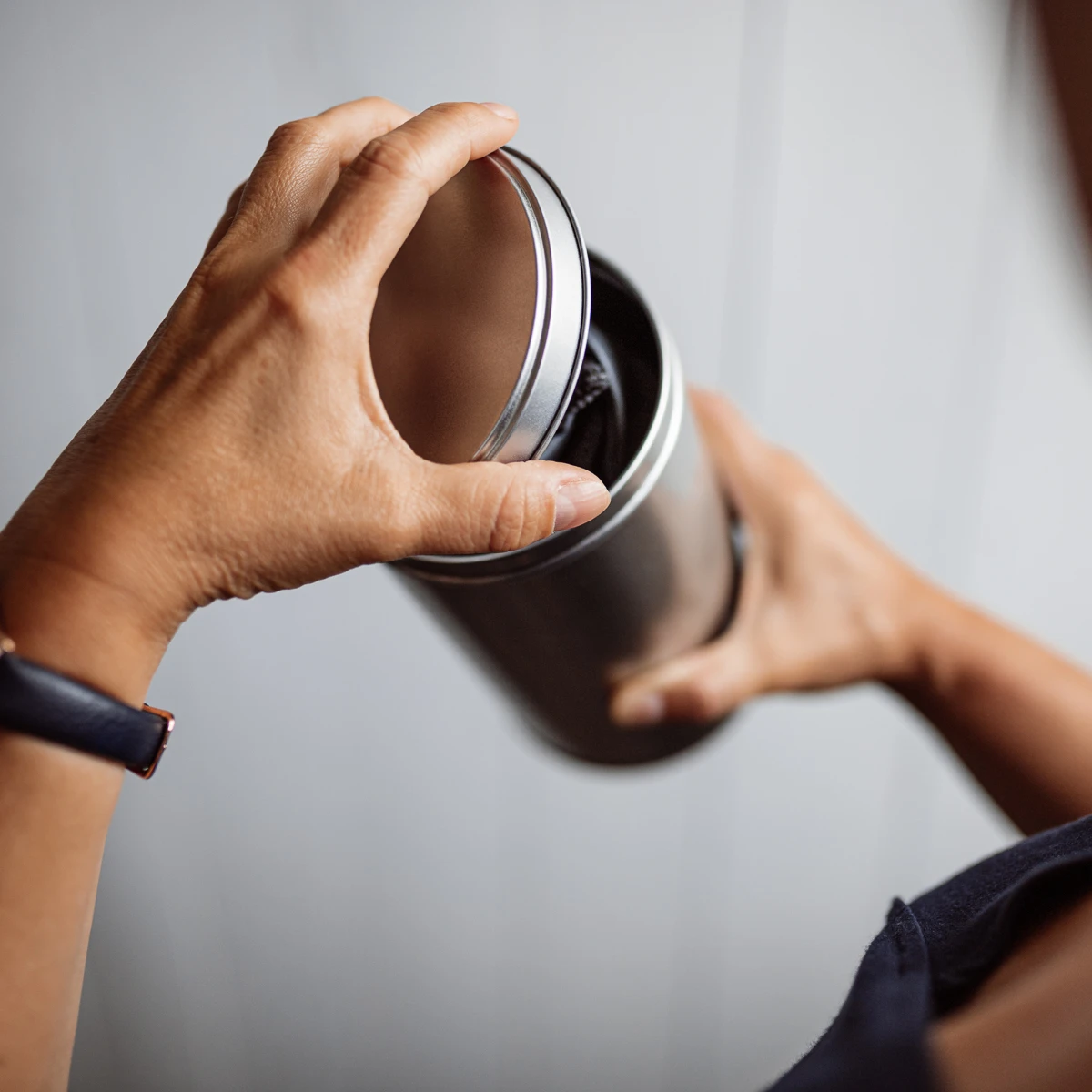 - Hochwertige, wiederverwendbare Dose mit Design-Etikett