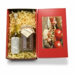 „Piratenkiste” gefüllt mit den Gourmet-Schätzen der berühmten Sansibar auf Sylt. Der Prosecco Spumante, Spumante-Rosé und die Cuvée N° 1 Chardonnay & Grauburgunder Only Sansibar & Brogsitter, exklusiv für die Sansibar auf Sylt komponiert. Bella di Cerignola – die begehrteste Olive Deutschlands. Sansibar Wasabi Nuts und Honig-Salzmandeln. Thunfisch-Filets aus dem „Otoro“, durchgehend marmoriert und so geschmeidig, dass das Fleisch förmlich auf der Zunge zergeht. Sensationell leckere getrocknete Tomaten, molto, molto bene. Sardinillas de Rianxo, weit über die Grenzen Spaniens hinaus beliebte Sardinen ohne Kopf. Sansibar Currywurstsauce – ein Star unter den Saucen. Das Sansibar Piratengold – unglaublich zart schokoladig und mit den edelsten Zutaten gefüllt. Die Sansibar Rote Grütze Bonbons in der hochwertigen Metallbox mit Logoprägung. Als Symbol für ein unbeschwertes Lebensgefühl – der Sansibar Aufkleber. Ein echter Piratenschatz, das perfekte Präsent.
