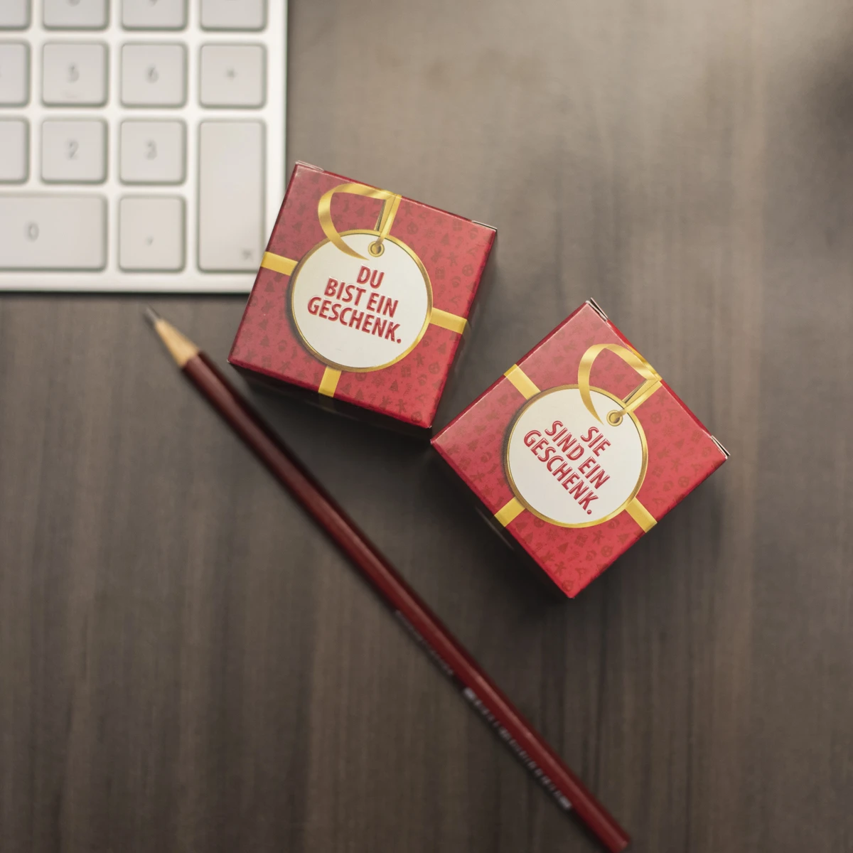 Die beliebteste Praline der Welt – mit der schönsten Botschaft für Deine Mitarbeiter und Kunden: „Sie sind ein Geschenk! Vielen Dank für Ihr Engagement und frohe Weihnachten“. Ein Moment, der garantiert in Erinnerung bleibt.