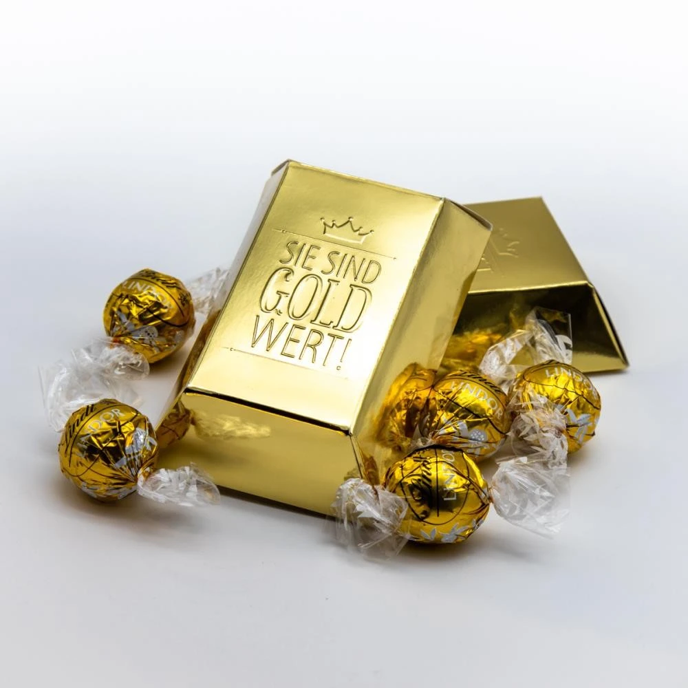 - auffallende Goldbarren Design-Verpackung: „SIE SIND GOLD WERT“