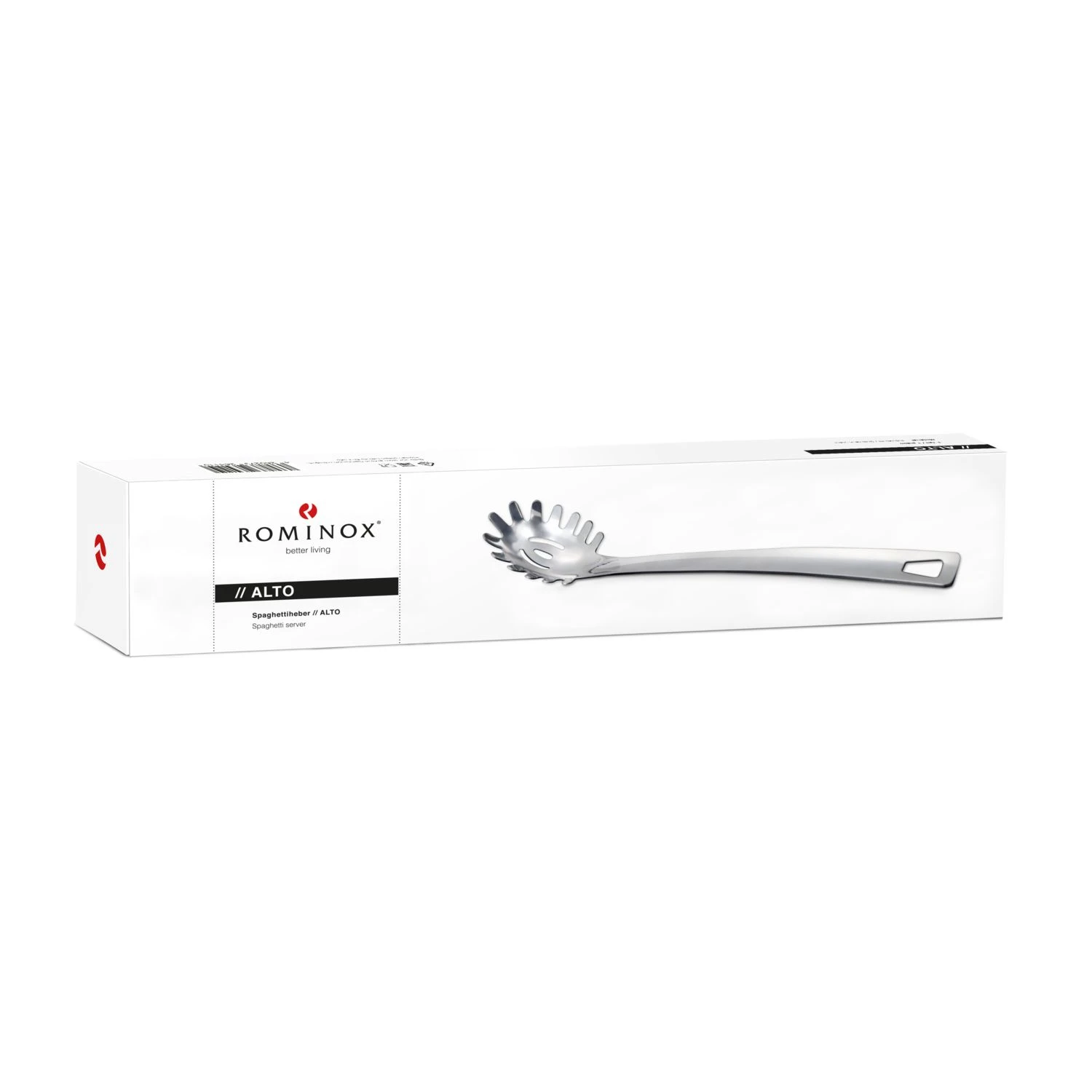 Praktischer Spaghettiheber zum Portionieren und Servieren von leckerer Pasta (Edelstahl poliert).
