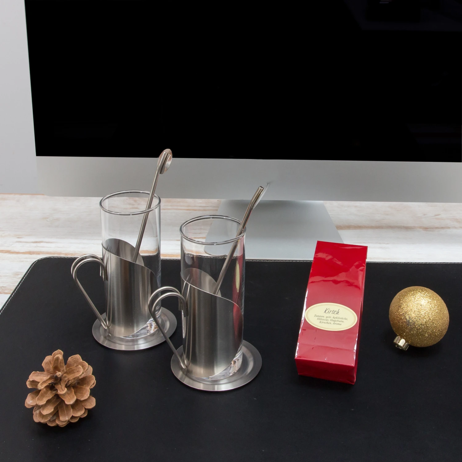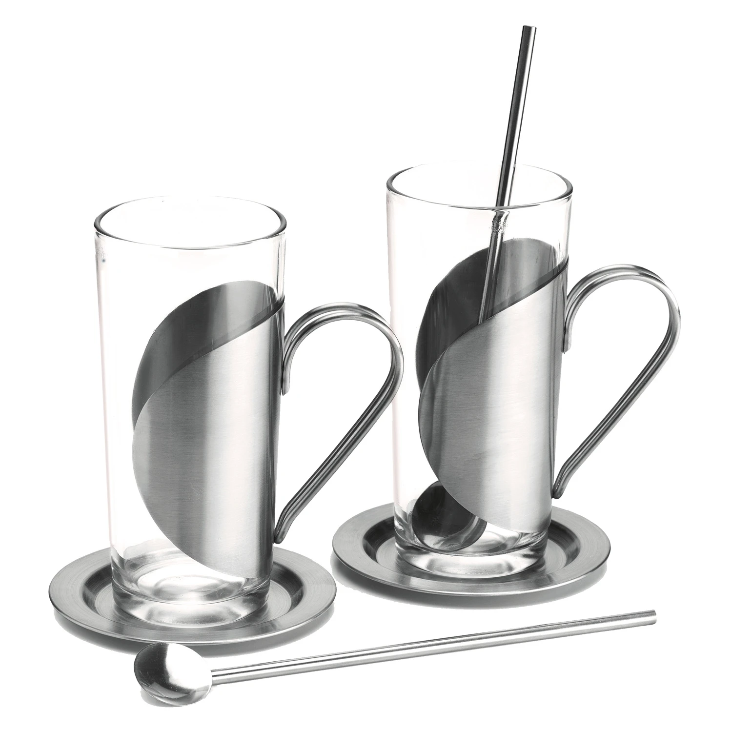 - Zwei edle Teegläser mit stilvollem Edelstahl-Griff