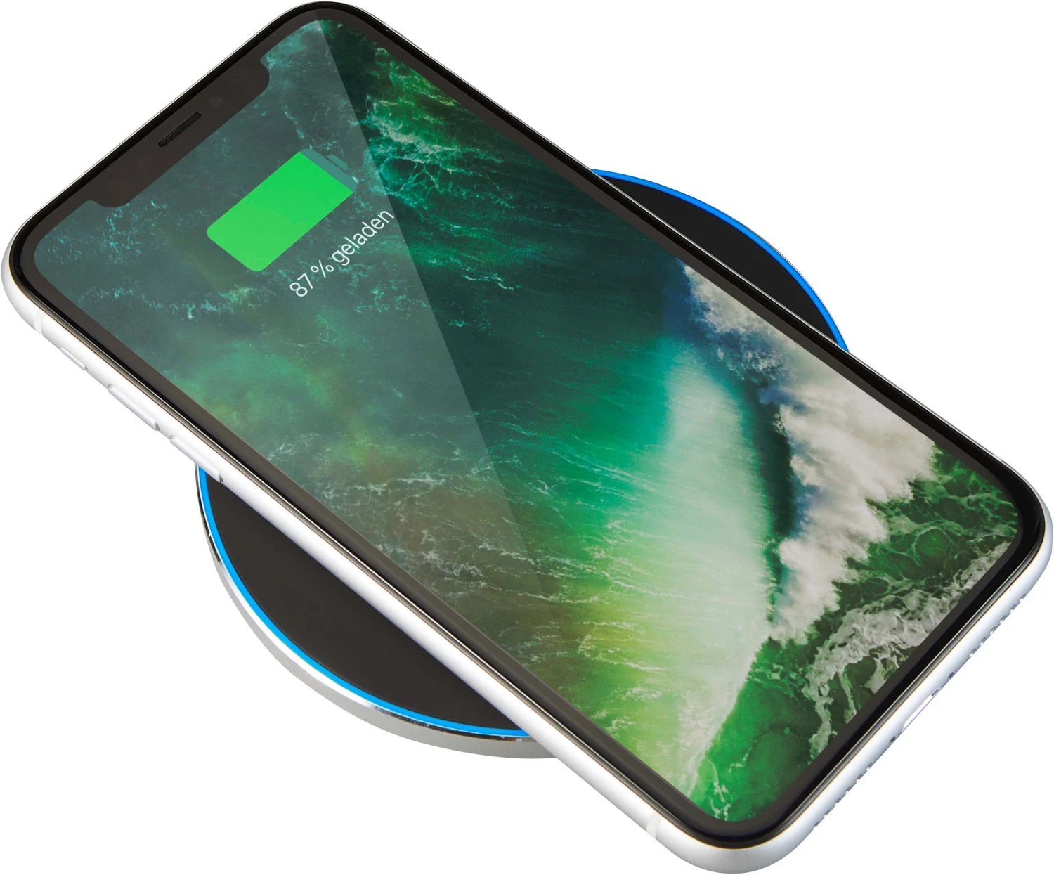 Eine runde Sache: formschöner Wireless Charger mit Aluminiumschale und rutschsicherer Oberfläche.