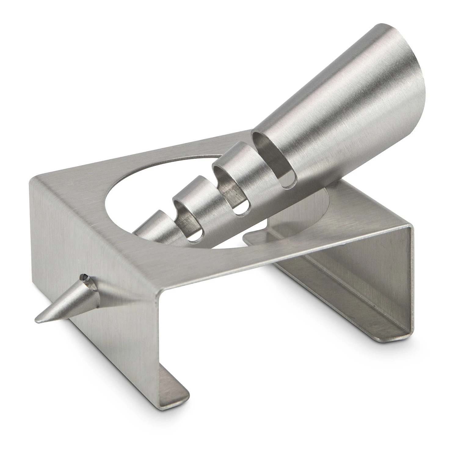 Elegante Zitronenpresse, frischer Saft direkt aus der Zitrone geträufelt (Edelstahl – seidenmatt gebürstet)
